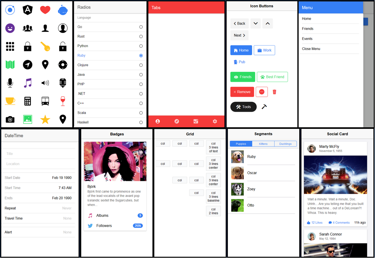 1)$colors map from variables.scss 2) Use the $map-get default sass function && the color ionic function 3) Check out button examples. 4) When on android the md class will be added to components