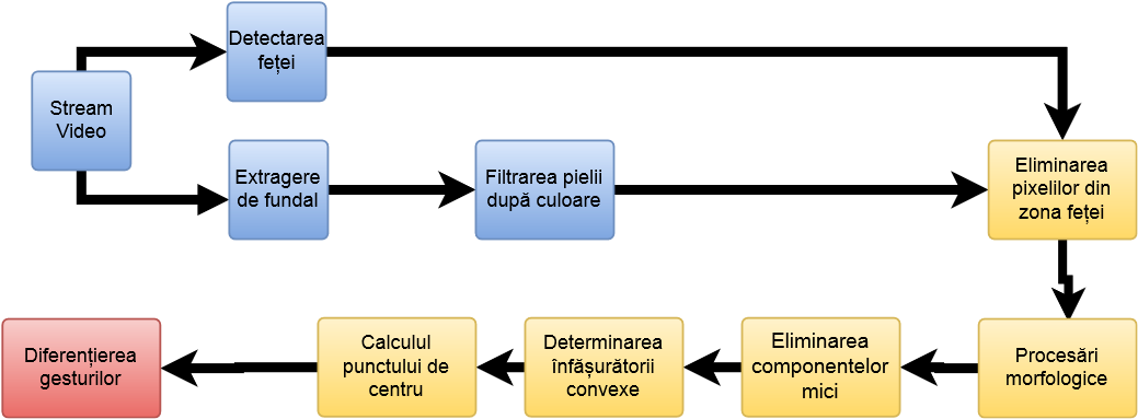 Scop: filtrarea exclusivă a pixelilor mâinii eliminând zgomotul