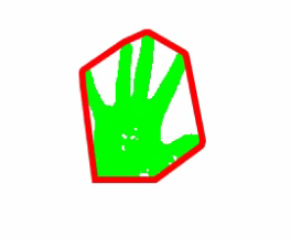Aflăm regiunea mâinii calculând înfășurătoarea convexă a acesteia.