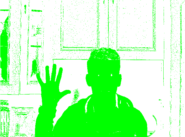 Filtrăm pixelii pielii folosind două praguri de culoare diferite, pentru spațiul RGB și cel HSV.